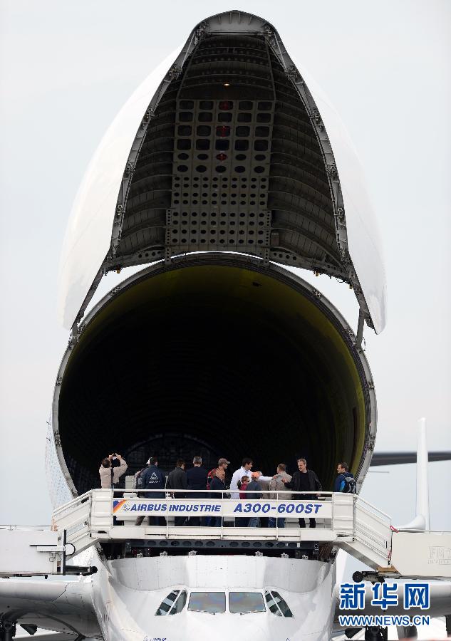 9月14日,觀(guān)眾在德國柏林航展上參觀(guān)空中客車(chē)Airbus Beluga運輸機的運輸艙,該機型的運輸艙容積達1400立方米,可載重47噸,在民用和軍用航空運輸領(lǐng)(lǐng)域都有廣泛應用。正在德國首都柏林舉行的2012年柏林國際航空航天展吸引了來(lái)自46個(gè)國家和地區(qū)的1243家參展商,共有約270架各類(lèi)飛行器參加靜態(tài)(tài)和動(dòng)態(tài)(tài)展示,這其中以空中客車(chē)A380、波音747-8為代表的“空中巨無(wú)霸”尤其引人關(guān)(guān)注。新華社記者 馬寧攝