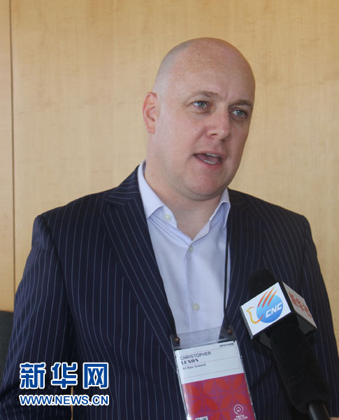 圖為新西蘭航空全球首席執(zhí)行官陸杰鋒 (Air New Zealand CEO Christopher Luxon)23日在奧克蘭接受新華網(wǎng)(wǎng)記者專(zhuān)訪(fǎng)。