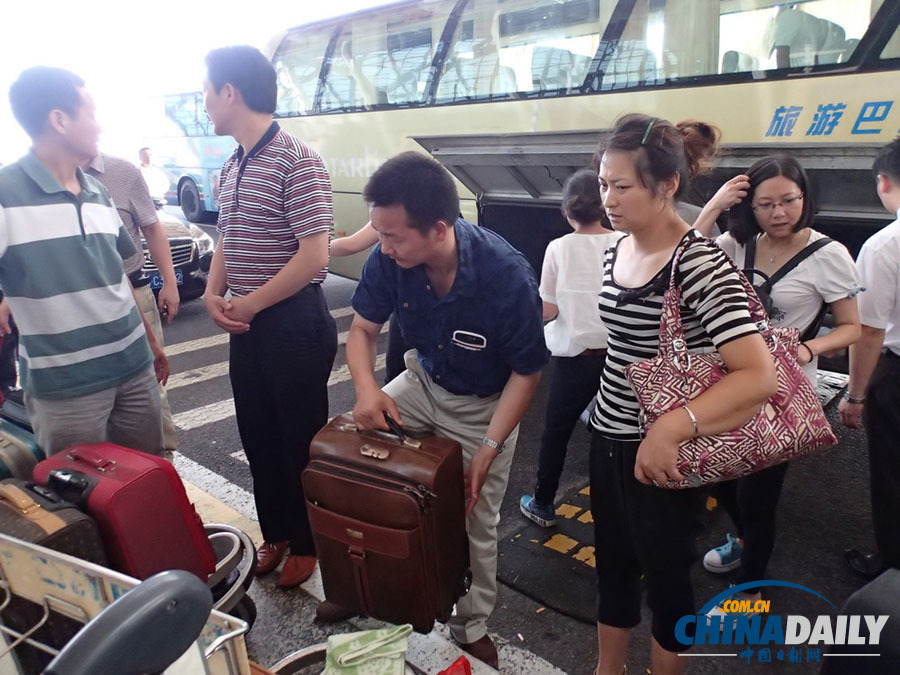 7月8日,在韓亞航空舊金山墜機(jī)事故中罹難的中國乘客王琳佳的父親(前左二)和母親(前右)抵達(dá)上海浦東國際機(jī)場(chǎng)(chǎng)。(高爾強(qiáng) 攝)