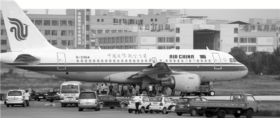 昨天中午,義烏飛往成都的國航CA4538航班滑出跑道,停在瀝青輔道上動(dòng)彈不得