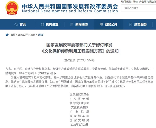 中國(guó)經(jīng)(jīng)濟(jì)網(wǎng)(wǎng)北京4月8日訊(記者 成琪)據(jù)國(guó)家發(fā)(fā)改委網(wǎng)(wǎng)站4月7日消息,為進(jìn)(jìn)一步完善全國(guó)城鄉(xiāng)公共文化服務(wù)(wù)體系,加強(qiáng)文化和自然遺產(chǎn)(chǎn)整體保護(hù)和活態(tài)(tài)傳承,推動(dòng)(dòng)文化旅游融合高質(zhì)(zhì)量發(fā)(fā)展,助力文化強(qiáng)國(guó)建設(shè),國(guó)家發(fā)(fā)展改革委會(huì)(huì )同相關(guān)(guān)部門(mén)對(duì)《文化保護(hù)傳承利用工程實(shí)(shí)施方案》(以下簡(jiǎn)(jiǎn)稱(chēng)“《方案》”)進(jìn)(jìn)行了修訂?!斗槳浮訪鞔_,要依托國(guó)家級(jí)資源新建或改擴(kuò)建一批重大文化設(shè)施,提升公共文化服務(wù)(wù)水平,促進(jìn)(jìn)優(yōu)(yōu)秀傳統(tǒng)文化和寶貴自然遺產(chǎn)(chǎn)整體保護(hù)和活態(tài)(tài)傳承,推動(dòng)(dòng)高質(zhì)(zhì)量發(fā)(fā)展和創(chuàng)(chuàng )造高品質(zhì)(zhì)生活相得益彰。