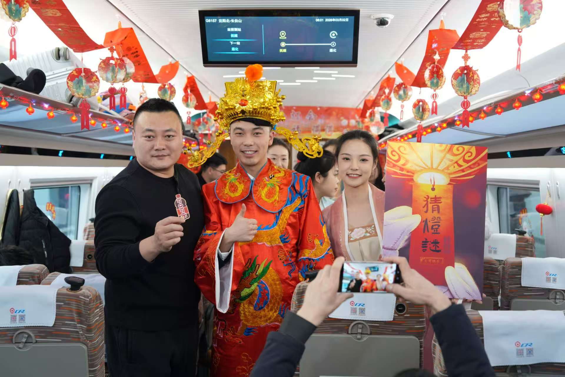 在G8157次列車(chē)上,一場(chǎng)“高鐵看燈會(huì ) 元宵福滿(mǎn)滿(mǎn)”元宵節(jié)特色活動(dòng)也正在上演,國鐵沈陽(yáng)局沈陽(yáng)客運段動(dòng)車(chē)一隊的乘務(wù)人員與旅客歡聚一堂,用歡聲笑語(yǔ)編織出一段溫馨難忘的旅途記憶。