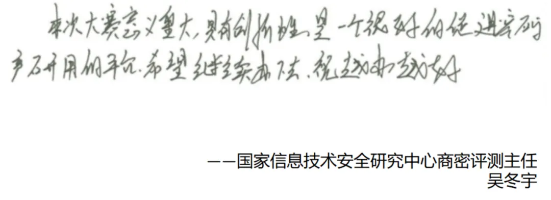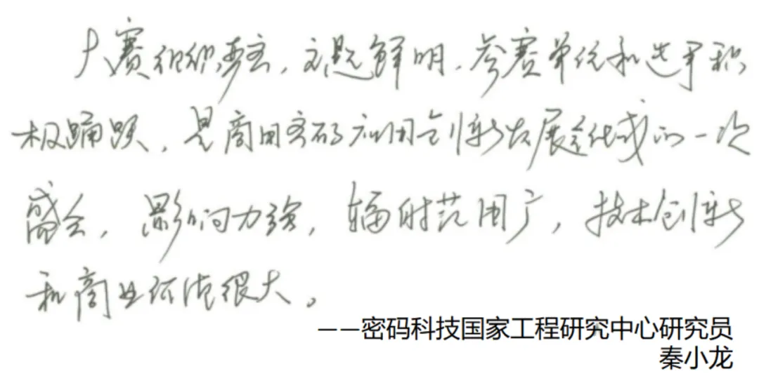 賽后,密碼科技國(guó)家工程研究中心研究員秦小龍、中國(guó)電力科學(xué)(xué)研究院高級(jí)工程師李智虎、中國(guó)科學(xué)(xué)院大學(xué)(xué)網(wǎng)(wǎng)絡(luò)(luò )空間安全學(xué)(xué)院教授/博導(dǎo)王躍武、國(guó)家信息技術(shù)(shù)安全研究中心商密評(píng)測(cè)主任吳冬宇等多位專(zhuān)家評(píng)委給大賽提出了寶貴的建議和意見(jiàn)。