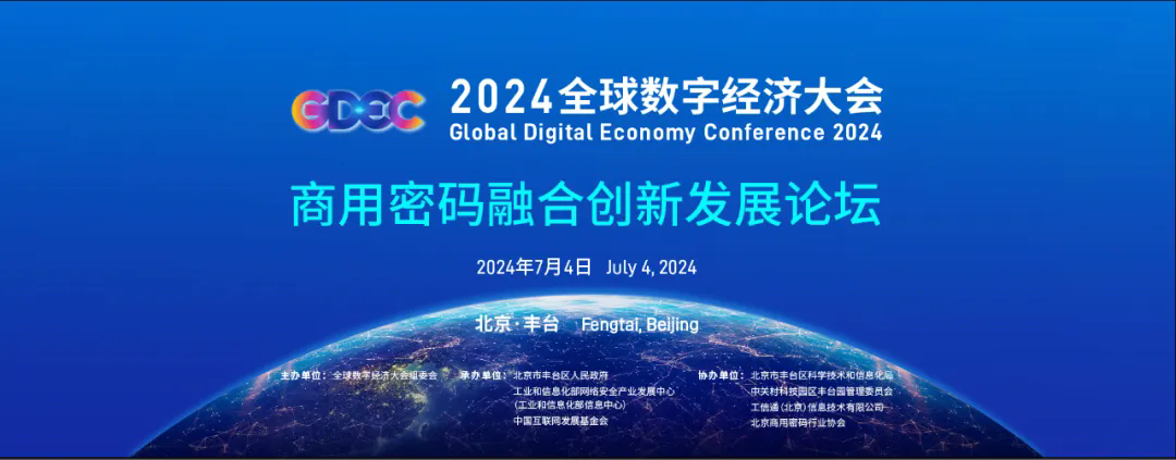7月4日,2024全球數(shù)字經(jīng)(jīng)濟(jì)大會(huì )商用密碼融合創(chuàng)(chuàng )新發(fā)(fā)展論壇即將啟幕!誠邀產(chǎn)(chǎn)業(yè)(yè)各界伙伴共聚豐臺,攜手并進(jìn)(jìn),共繪商密新篇章!