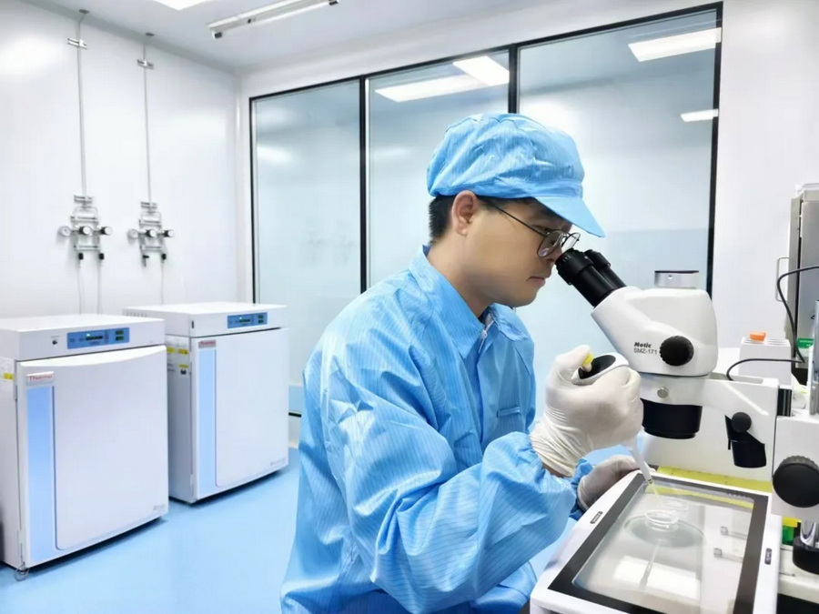 奶牛遺傳育種方向上,現(xiàn)代牧業(yè)(yè)通遼牧場(chǎng)(chǎng)通過(guò)(guò)持續(xù)與國(guó)外育種公司交流,進(jìn)(jìn)口國(guó)外優(yōu)(yōu)質(zhì)(zhì)種用胚胎,同時(shí)(shí)自繁牛只定向選種選配,快速建立核心種子牛群。以種子牛群為依托,通過(guò)(guò)外部與國(guó)內(nèi)優(yōu)(yōu)秀的胚胎技術(shù)(shù)團(tuán)隊(duì)合作、內(nèi)部依托年產(chǎn)(chǎn)能5萬(wàn)(wàn)枚胚胎的實(shí)(shí)驗(yàn)室自主胚胎生產(chǎn)(chǎn)雙線(xiàn)并行,生產(chǎn)(chǎn)并移植大量?jì)?yōu)質(zhì)(zhì)胚胎,為后代優(yōu)(yōu)秀牛犢不斷出生夯實(shí)(shí)基礎(chǔ)。