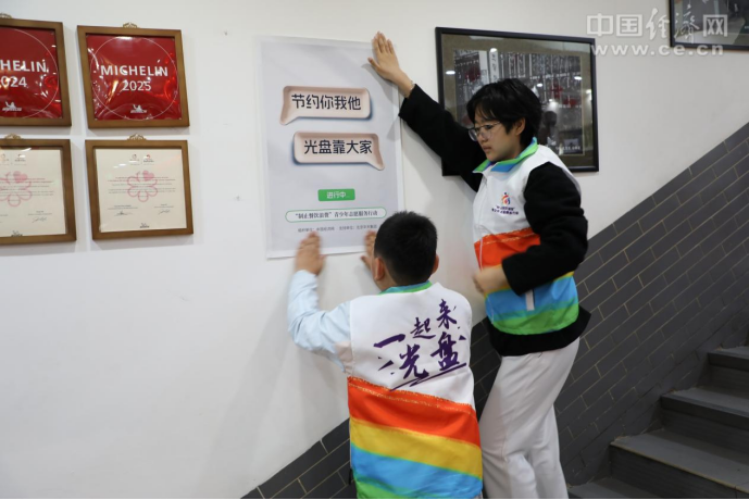 活動(dòng)(dòng)中,“制止餐飲浪費(fèi)”青少年志愿者們首先將宣傳節(jié)約糧食、反對浪費(fèi)的標(biāo)語(yǔ)海報(bào)張貼在餐廳顯著(zhù)位置。