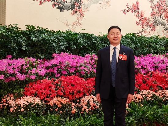 全國(guó)人大代表、樺南縣鴻源水稻專(zhuān)業(yè)(yè)合作社理事長(zhǎng)(cháng)孫斌。(記者 楊秀峰攝)