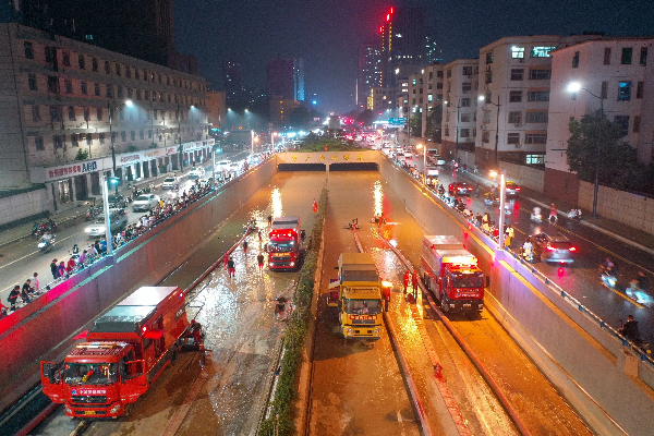 2021年7月,河南發(fā)(fā)生特大暴雨,鄭州京廣路隧道被淹。圖為中國安能救援隊伍全力開(kāi)展抽排水任務(wù)(wù)。 資料圖片