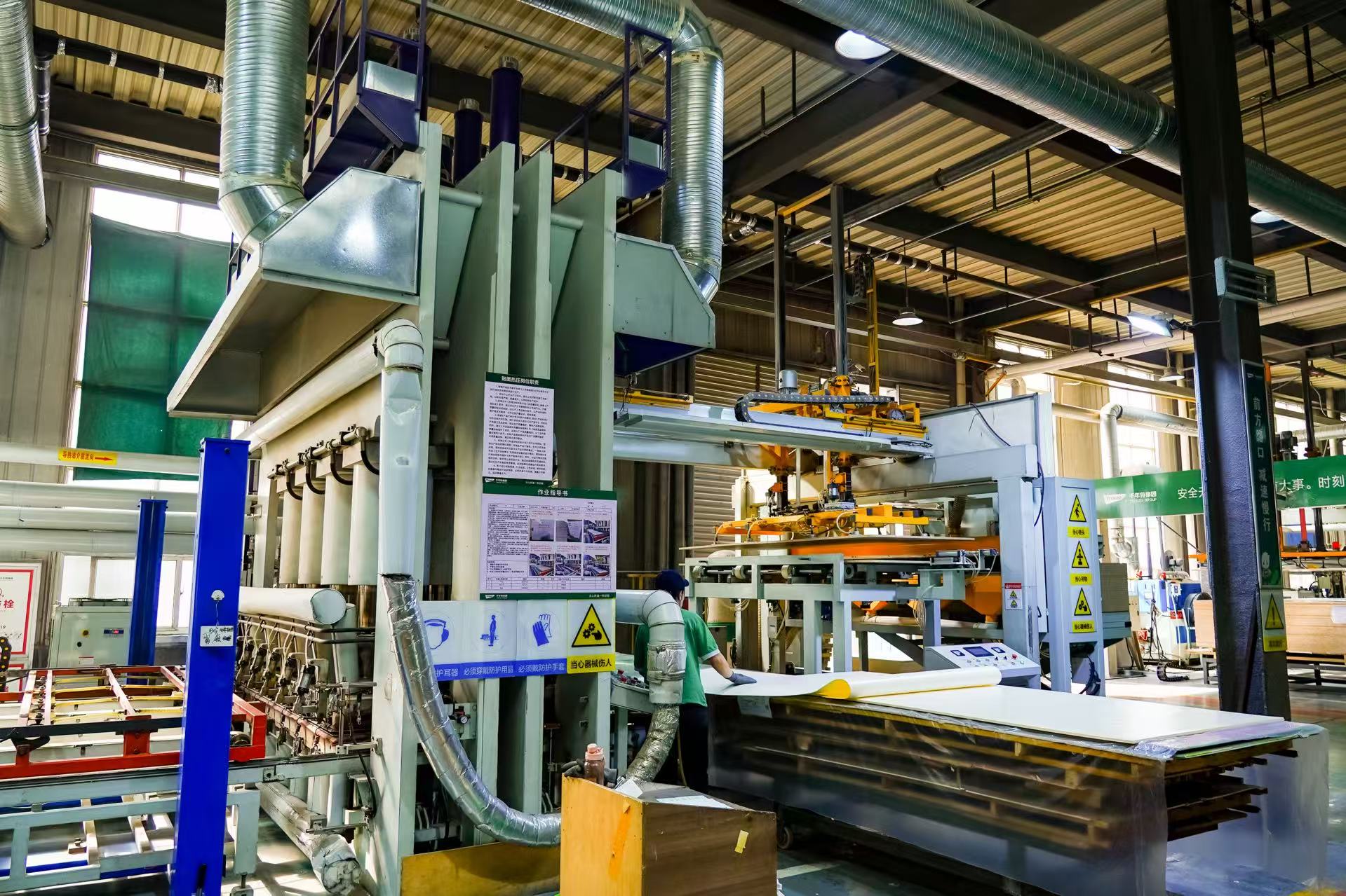 走進(jìn)日照智能工廠(chǎng),德國EWK環(huán)(huán)保設備與熱能中心組成的“綠色屏障”格外醒目。這座2024年新晉國家級綠色工廠(chǎng),以99.9%的木材綜合利用率、全流程尾氣凈化系統(tǒng)及零廢水排放標準,構建起產(chǎn)線(xiàn)、管控、環(huán)(huán)保全鏈條協(xié)(xié)同的高效體系,擺脫了傳統(tǒng)建材行業(yè)(yè)高耗能、高排放的發(fā)(fā)展路徑。