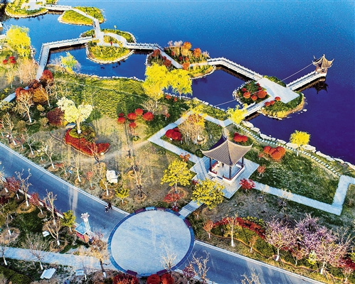4月7日拍攝的江蘇省連云港市東??h水晶公園。近年來(lái),東??h堅(jiān)持走“生態(tài)(tài)優(yōu)(yōu)先、綠色發(fā)(fā)展”之路,通過(guò)實(shí)(shí)施生態(tài)(tài)修復(fù),河道、村莊綜合整治等多項(xiàng)管理機(jī)制,為當(dāng)?shù)卮蛟炝恕氨趟{(lán)天、岸綠花香”的良好生態(tài)(tài)。