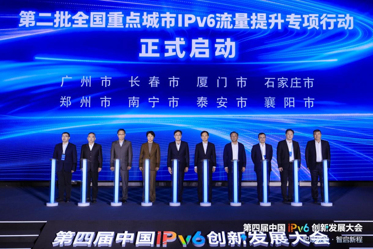 成果發(fā)(fā)布環(huán)(huán)節(jié),與會(huì )各方共同見(jiàn)證了中央網(wǎng)(wǎng)信辦、工業(yè)(yè)和信息化部組織開(kāi)展“全國重點(diǎn)城市IPv6流量提升專(zhuān)項行動(dòng)”的經(jīng)(jīng)驗和成果,8個(gè)重點(diǎn)城市固定網(wǎng)(wǎng)絡(luò)(luò )IPv6流量占比同比增長(cháng)63.14%,移動(dòng)網(wǎng)(wǎng)絡(luò)(luò )IPv6流量平均占比同比增長(cháng)12.37%。中央網(wǎng)(wǎng)信辦信息化發(fā)(fā)展局、工業(yè)(yè)和信息化部信息通信發(fā)(fā)展司及第二批8個(gè)重點(diǎn)城市相關(guān)(guān)領(lǐng)(lǐng)導,共同啟動(dòng)“第二批全國重點(diǎn)城市IPv6流量提升專(zhuān)項行動(dòng)”,深化關(guān)(guān)鍵環(huán)(huán)節(jié)升級改造,帶動(dòng)全國IPv6發(fā)(fā)展水平再上新臺階。會(huì )上還發(fā)(fā)布了工業(yè)(yè)和信息化部、中央網(wǎng)(wǎng)信辦組織開(kāi)展“網(wǎng)(wǎng)絡(luò)(luò )去NAT”專(zhuān)項工作的階段性成果:9個(gè)試點(diǎn)地區(qū)基礎(chǔ)電信企業(yè)(yè)自有環(huán)(huán)境固定寬帶用戶(hù)IPv6連通率達97.52%,試點(diǎn)地區(qū)NAT44設(shè)備容量全面實(shí)現(xiàn)零增長(cháng)。后續(xù),相關(guān)(guān)部門(mén)將在試點(diǎn)經(jīng)(jīng)驗基礎(chǔ)上,在全國范圍內(nèi)進(jìn)一步開(kāi)展“網(wǎng)(wǎng)絡(luò)(luò )去NAT”專(zhuān)項工作,持續(xù)推動(dòng)網(wǎng)(wǎng)絡(luò)(luò )和應(yīng)用的IPv6演進(jìn)升級。