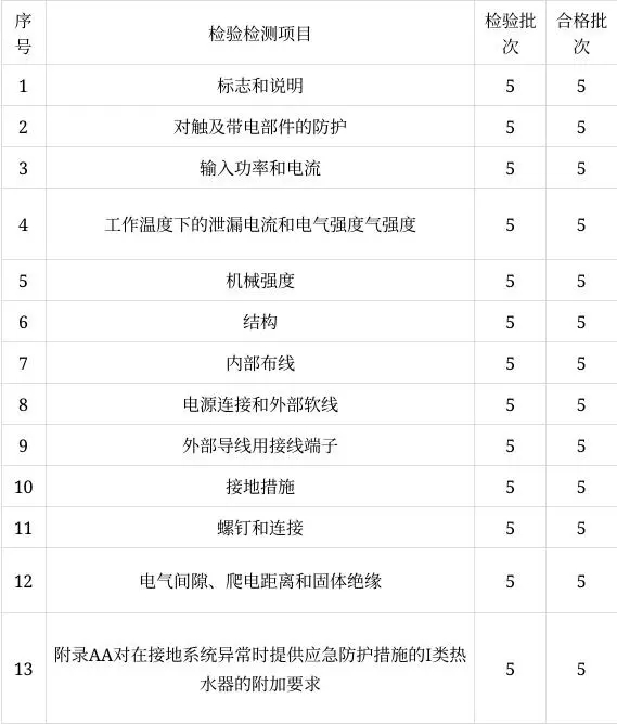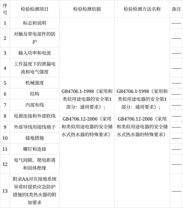 表2 儲水式電熱水器產(chǎn)(chǎn)品檢驗檢測項目及依據(jù)