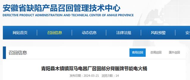 消費(fèi)者可撥打青陽(yáng)縣木鎮(zhèn)鎮(zhèn)雙馬電器廠(chǎng)熱線(xiàn)電話(huà)13205669559,了解該召回產(chǎn)(chǎn)品的具體信息,此外也可登錄安徽省缺陷產(chǎn)(chǎn)品召回管理技術(shù)(shù)中心網(wǎng)(wǎng)站(http://www.ahdpract.com)了解更多信息,反映缺陷線(xiàn)索。