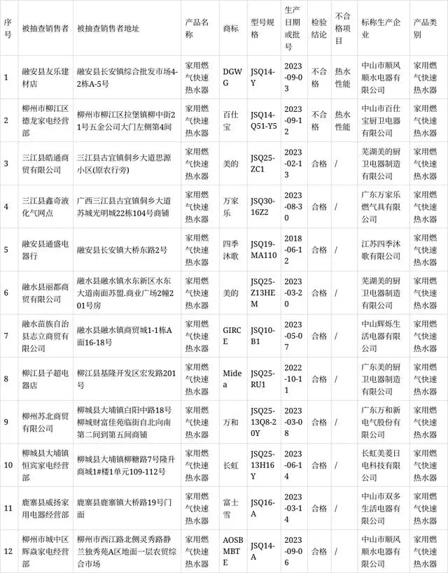 近日,廣西柳州市市場(chǎng)監(jiān)督管理局通報(bào)2023年成品油、電動(dòng)自行車(chē)、家用燃?xì)庠罹叩?0種產(chǎn)(chǎn)品質(zhì)(zhì)量柳州監(jiān)督抽查情況。