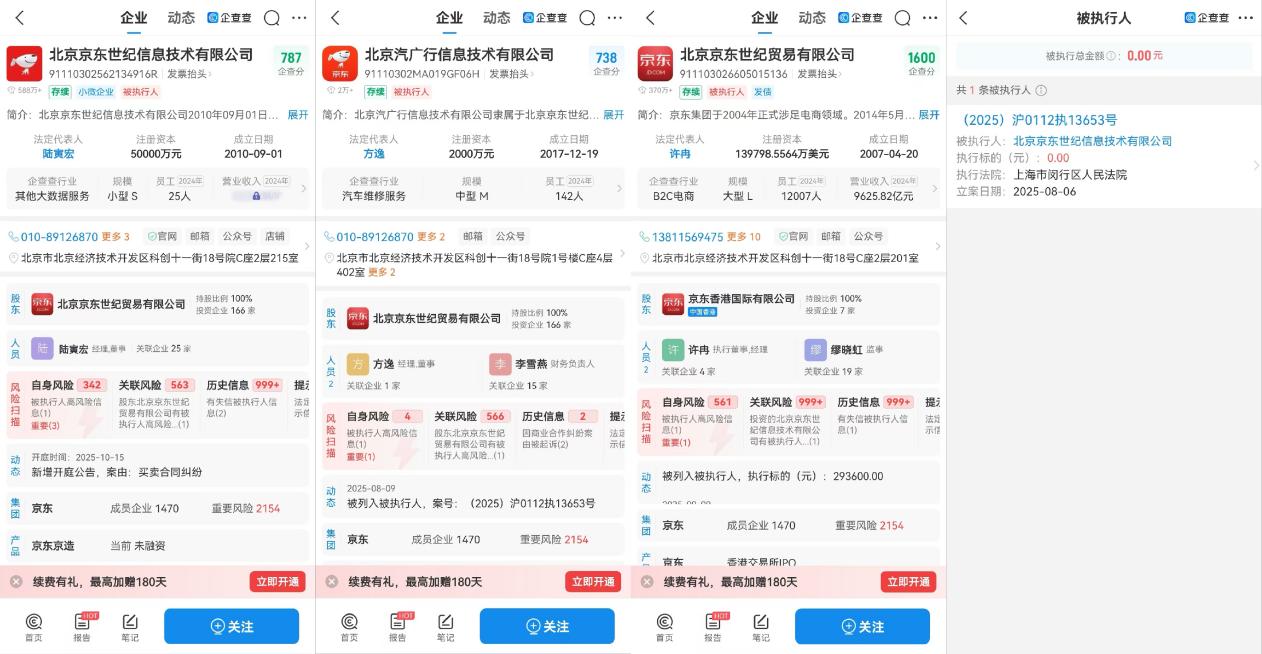 2025年8月4日,京東養(yǎng)車(chē)在官方微信等渠道發(fā)(fā)布聲明稱(chēng),“‘震虎價(jià)(jià)’宣傳活動(dòng)(dòng)中的相關(guān)(guān)行為構(gòu)成不正當(dāng)競(jìng)爭(zhēng),現(xiàn)特此聲明,以消除影響?!逼蟛椴椴樵?xún)結(jié)果顯示,京東養(yǎng)車(chē)的三家關(guān)(guān)聯(lián)(lián)公司(亦即京東養(yǎng)車(chē)不正當(dāng)競(jìng)爭(zhēng)糾紛案的三家被告),因未履行完畢生效判決,已經(jīng)(jīng)于2025年8月6日被列為“被執(zhí)行人”,而點(diǎn)(diǎn)進(jìn)(jìn)“被執(zhí)行人”發(fā)(fā)現(xiàn),執(zhí)行標(biāo)的為0元,執(zhí)行法院為上海市閔行區(qū)人民法院。