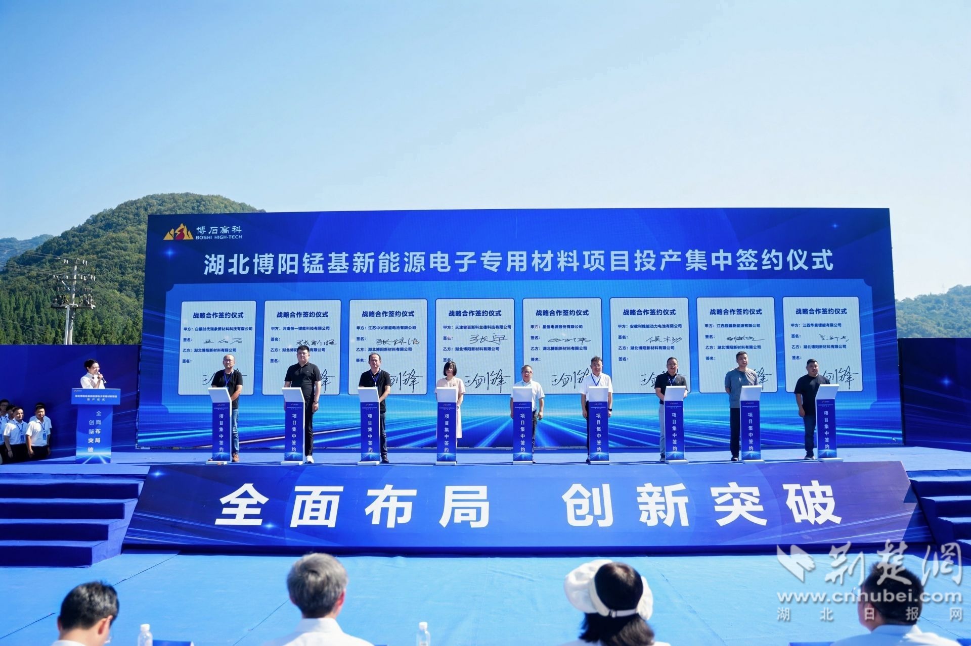 湖北博陽(yáng)錳基新能源電子專(zhuān)用材料項目投產(chǎn)(chǎn)集中簽約儀式。(黃婉蓉 攝)