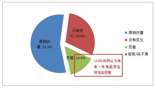 總體來(lái)(lái)說(shuō)(shuō),市民對(duì)未來(lái)(lái)食品安全的改善比較有信心。55.5%的市民認(rèn)為未來(lái)(lái)一年的食品安全會(huì)(huì )得到改善,14.6%的市民認(rèn)為會(huì)(huì )變差,還有29.9%的市民認(rèn)為會(huì)(huì )沒(méi)(méi)有變化。
