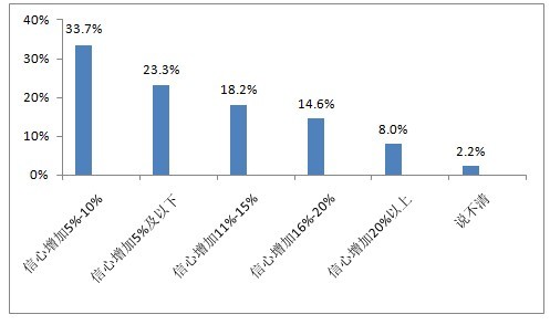 在認(rèn)為未來(lái)(lái)一年食品安全狀況會(huì)(huì )改善的市民中,信心增加程度為5%~10%的市民人數(shù)最多,占到了33.7%,其次是信心增加程度低于5%的市民,有23.3%。