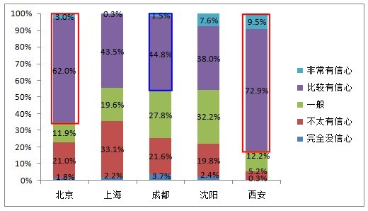 解讀三:未來(lái),西安、北京對食品安全的改善最有信心,上海、成都信心不足。