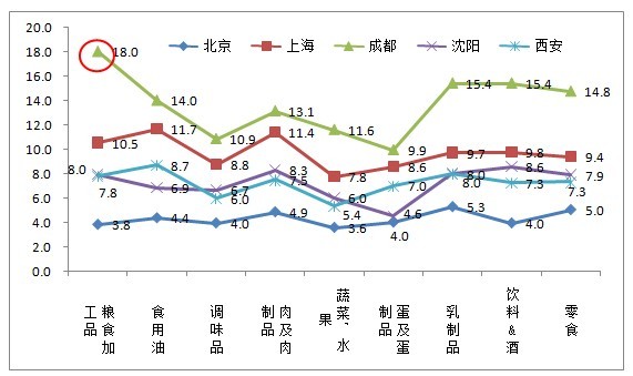解讀四:成都的食品安全信心指數(shù)增長(cháng)最快,其次是上海,最差的是北京
