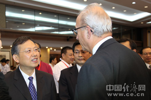 由中國道路交通安全協(xié)(xié)會(huì )、中國汽車(chē)技術(shù)(shù)研究中心和中國經(jīng)(jīng)濟網(wǎng)(wǎng)共同主辦的“2013中國道路交通安全論壇”于8月29日在北京首都大酒店舉行。圖為公安部副部長(cháng)黃明與國際道路交通安全協(xié)(xié)會(huì )主席高斯進(jìn)行交流。中國經(jīng)(jīng)濟網(wǎng)(wǎng) 郝紅波 攝影