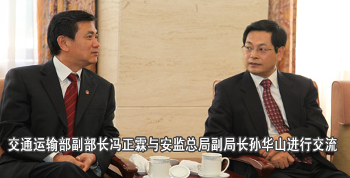 交通運(yùn)輸部副部長(zhǎng)(cháng)馮正霖與安監(jiān)總局副局長(zhǎng)(cháng)孫華山進(jìn)(jìn)行交流