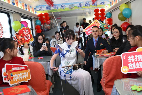 2月2日,為期40天的鐵路春運(yùn)拉開(kāi)帷幕。沈陽(yáng)局集團(tuán)有限公司大連客運(yùn)段K2623次“濱疆號”列車(chē)上暖意融融,一場(chǎng)以“濱疆同行、連滿(mǎn)同心”為主題的春運(yùn)首日特色活動(dòng)溫情啟幕。大連客運(yùn)段與大連公安處乘警支隊(duì)攜手聯(lián)(lián)動(dòng),以文藝表演、互動(dòng)科普、溫情服務(wù)(wù)相結(jié)合的方式,為旅客送上真摯祝福,讓跨越山海的春運(yùn)旅途充滿(mǎn)了年味。