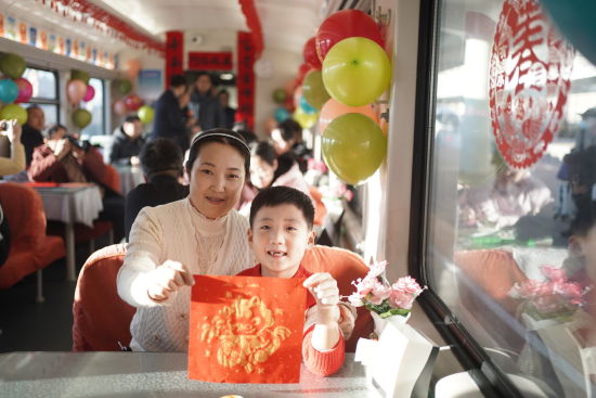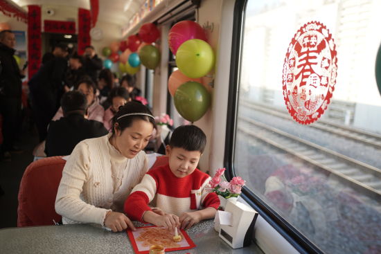 趣味互動(dòng)與安全科普并行,讓旅途安心亦有趣?;顒?dòng)圍繞鐵路乘車(chē)常識與反詐知識設(shè)置兩輪有獎問(wèn)答,內(nèi)容涵蓋12306購票流程、兒童票新規(guī)、電信詐騙防范等實(shí)(shí)用話(huà)題。旅客踴躍參與,答對者均獲贈列車(chē)準(zhǔn)備的精美紀(jì)念品。乘警結(jié)合題目現(xiàn)場(chǎng)剖析詐騙手法與出行隱患,助力旅客筑牢安全意識。列車(chē)還為小朋友準(zhǔn)備了非遺剪紙和拓印福字體驗(yàn),孩子們在動(dòng)手創(chuàng)(chuàng )作中感受傳統(tǒng)年味,一幅幅紅艷剪紙、一張張飽滿(mǎn)“?!弊?,點(diǎn)(diǎn)亮了車(chē)廂,也傳遞出新春的美好祝愿。